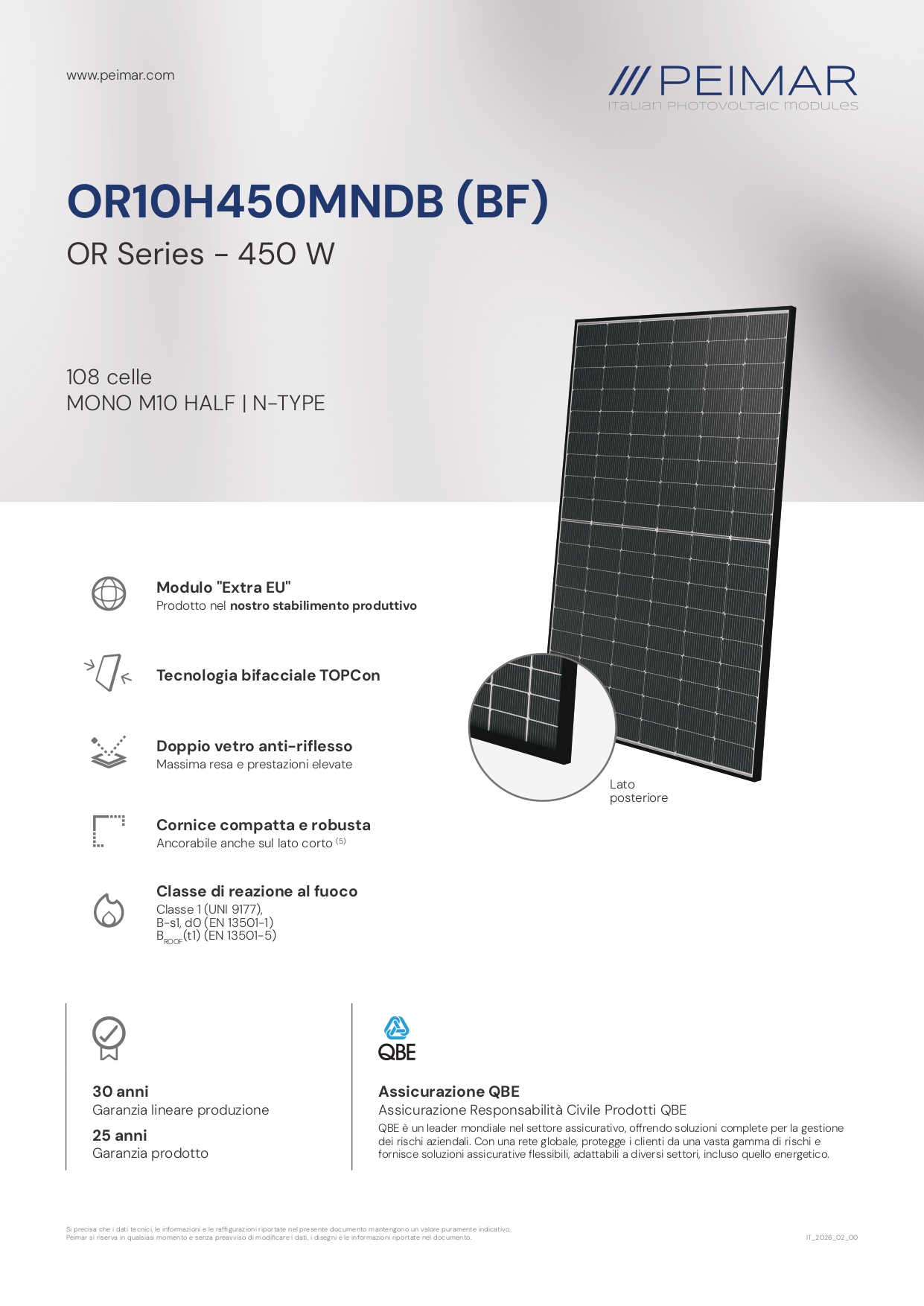 Kit 36 Solar Panels 450W PEIMAR OR10H450MNDB (16.2 kw total) Double-Sided Glass
