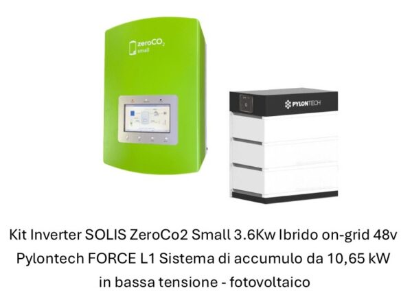 Kit Inverter SOLIS ZeroCo2 Small 3.6Kw Ibrido on-grid 48v + Pylontech FORCE L1 Sistema di accumulo da 10.65kW in bassa tensione – fotovoltaico