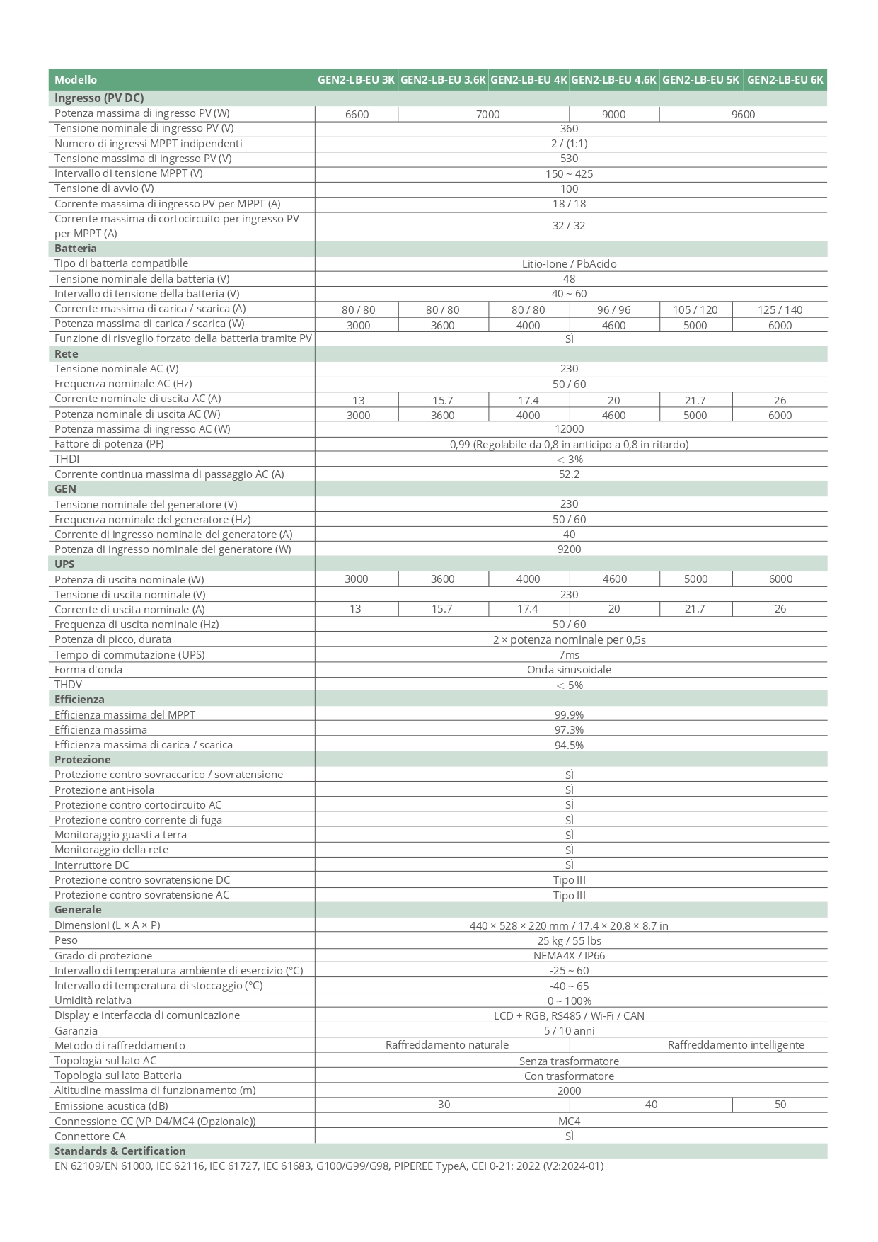 LuxPower Tek GEN2-LB-EU 6K 48V Ibrido On-Grid CEI-021